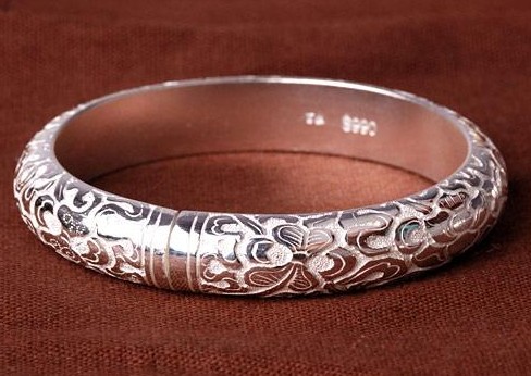 7、要正确地对银镯子进行清洗,按正确方法佩戴;带手镯时应先从手腕侧面较窄处戴入,再围绕手腕旋转至正常位置,切勿硬掰,否则可能造成手镯面石头掉落或者手镯本身变形。
