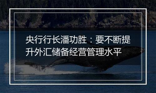 央行行长潘功胜:要不断提升外汇储备经营管理水平...