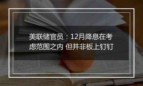美联储官员:12月降息在考虑范围之内 但并非板上钉钉...