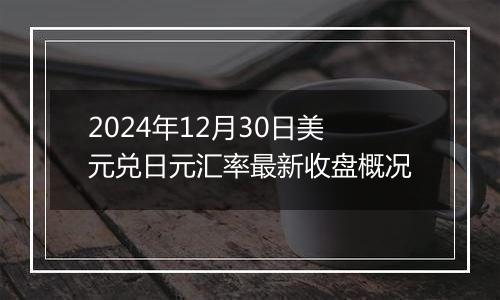 根据外汇市场的最新数据, 2024年12月30日美元兑日元汇率最新交投于157.7770,截至上一交易日纽约汇市尾市,美元兑日元收盘价为157.9120,日元对美元汇率收盘价为0.0063。...