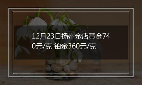 2024年12月23日,实物黄金扬州金店黄金报价740元/克,相比上一个交易日保持不变。铂金价格今天报价360元/克,相比上一个交易日保持不变。...