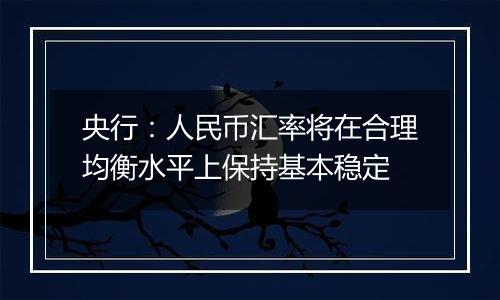 央行:人民币汇率将在合理均衡水平上保持基本稳定...