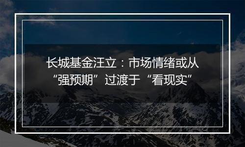 长城基金汪立:市场情绪或从“强预期”过渡于“看现实”...