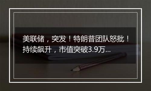 美联储,突发!特朗普团队怒批!持续飙升,市值突破3.9万亿美元!...