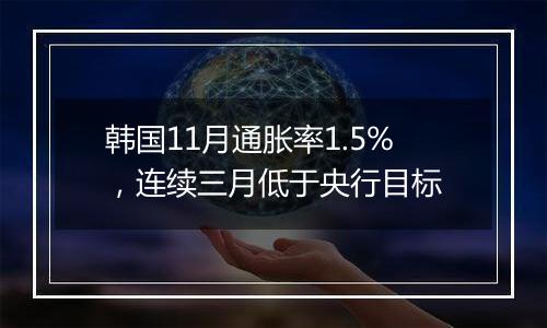 韩国11月通胀率1.5%,连续三月低于央行目标...