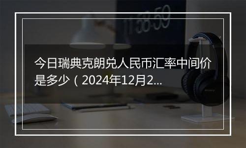 中国人民银行授权中国外汇交易中心公布,2024年12月30日银行间外汇市场瑞典克朗兑人民币汇率中间价为:人民币1元对1.5204瑞典克朗。...